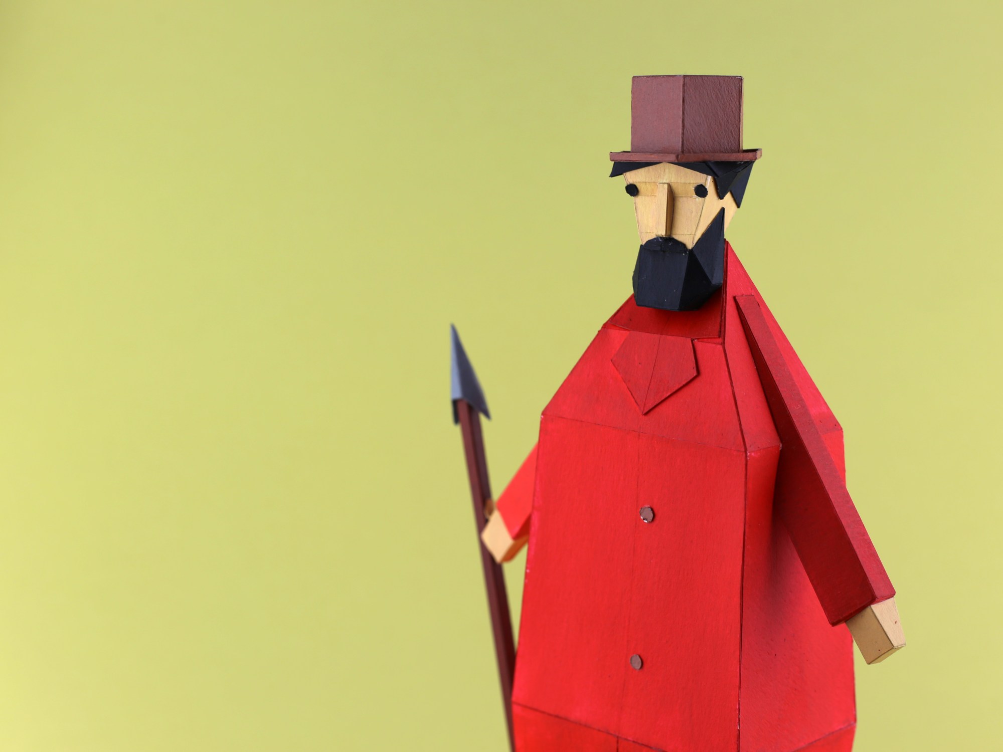 It was a joy to collaborate with this colourful hand-illustrated scarf brand, Rumisu based in Istanbul. This character was Captain Ahab which was illustrated by Pınar Yeğin then printed on one of their scarves. It was a fun experience to see her character as a 3D sculpture made of paper.