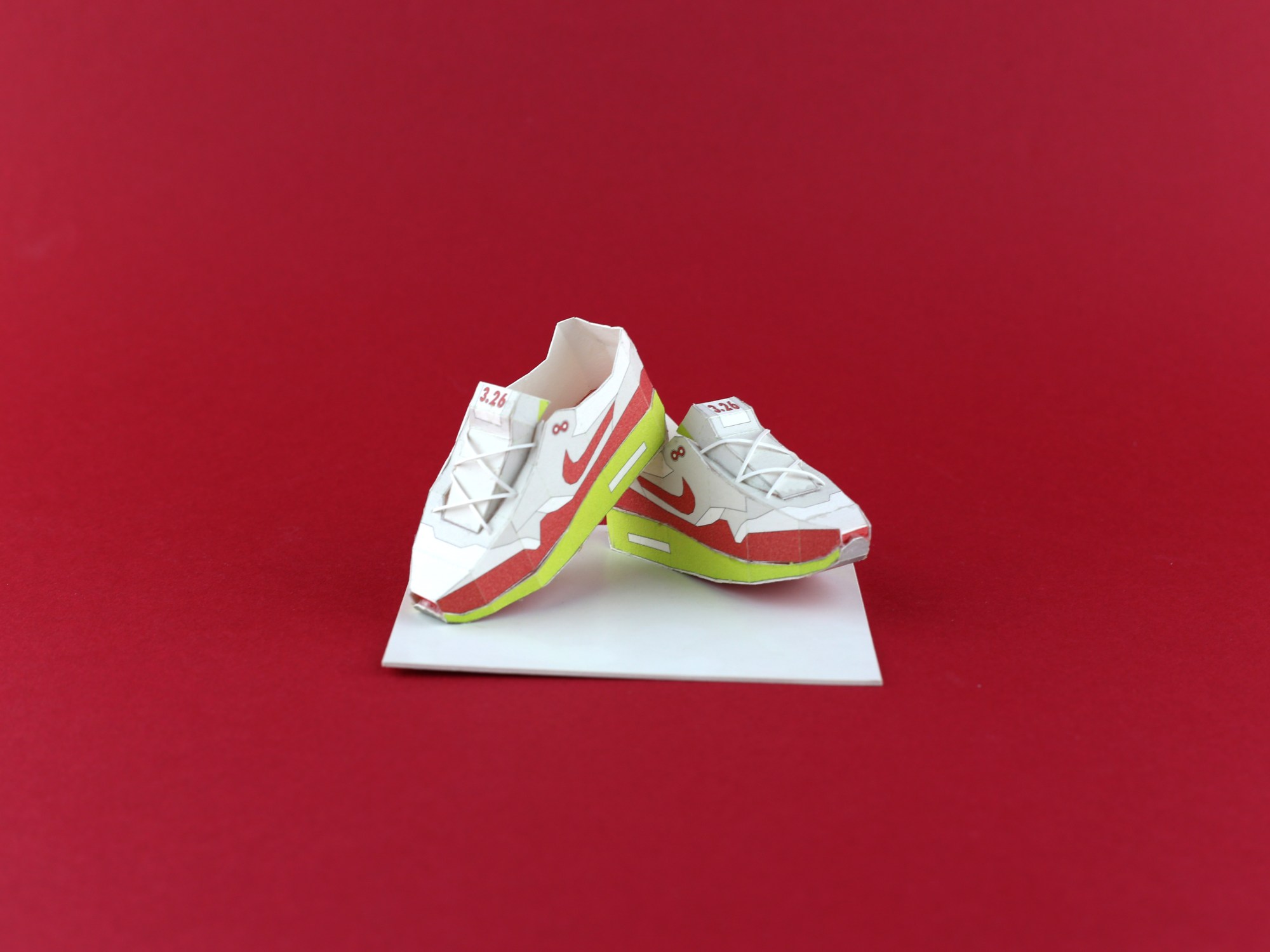 These paper shoes were made to collaborate with Nike for a celebration of Nike Airmax day in Istanbul. This was a paper model of the special edition: 3.26 Airmax. We made thirty pairs of these shoes for displaying in a department store in Istanbul.