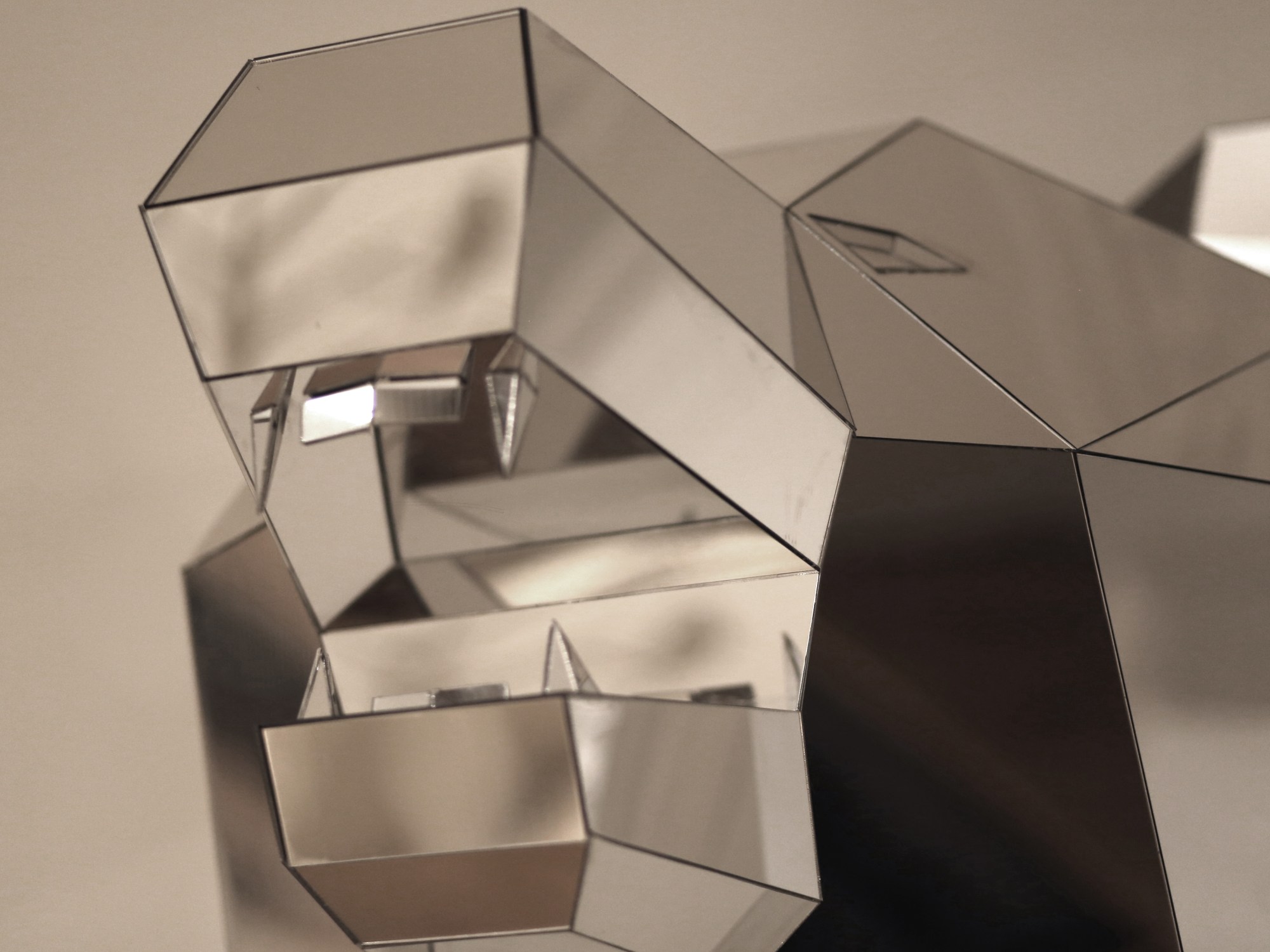Kolektif House Istanbul (a co-working space) needed a bear figure which is their trademark they are using in their offices. They wanted us to design a bear with a mirror reflecting our style. We thought the best way to create a bear with paper first, and to coat it with plexiglass pieces. The mirror is used in a purpose of vanishing the massive structure of the sculpture within the space.
